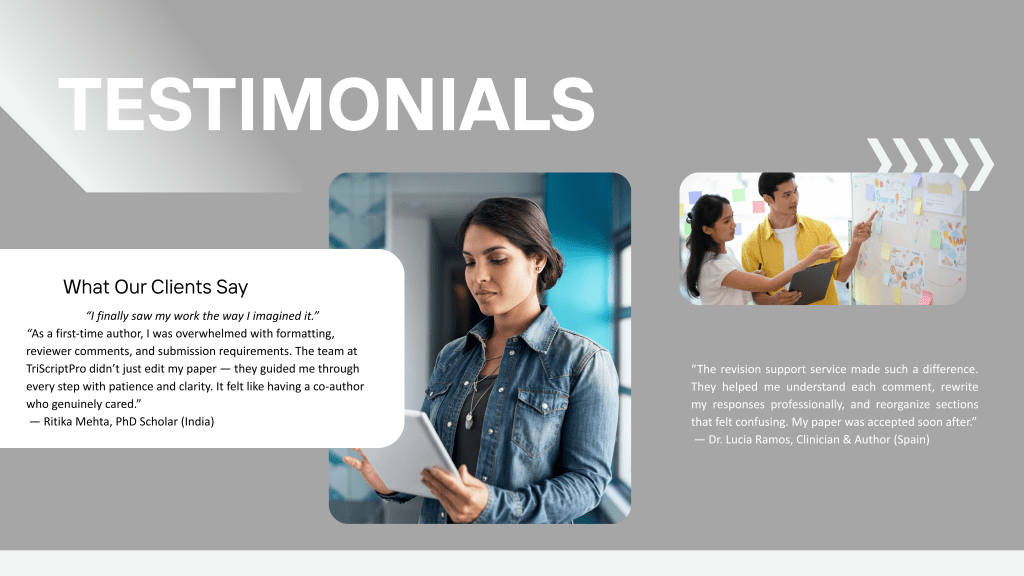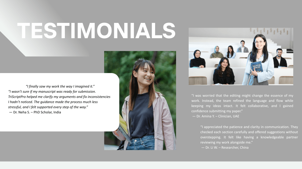 At TriScriptPro, we’ve worked with authors who’ve poured their heart, time, and intellect into their research. Each story here reflects not just satisfaction- but the relief, pride, and confidence that come from seeing your work finally take shape.